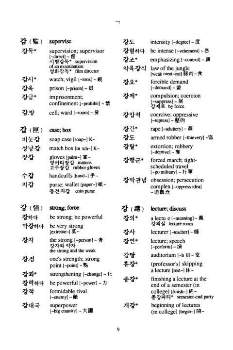강하다 be s tro n g ; b e p o w e rfu l 강의* a le c tu e [-m eaning] - 義