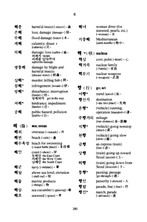 해 (海 ) s e a ; ^ ^ i 직행 * (vehicle) g o i n g n o n s t o p