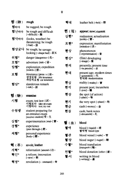 험난하다 b e r o u g h a n d difficult 현 ( 現 ) r; n o w ; 고t