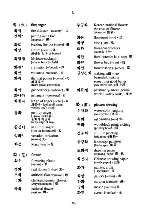 화 (火 ) a n g e r 무 궁 화 K o r e a n national flower;