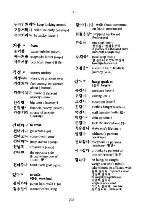 두리 번거리다 k e e p lo o k i n g a r o u n d 겉 어다니 다 w a l k about; c o m m u t e
