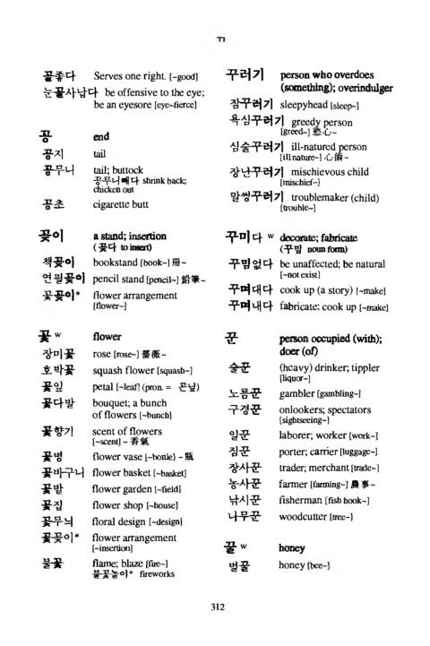 꽃향기       scent o f  f low er s      일꾼       laborer; w o rk e r  [work-J