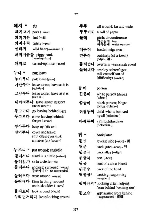 그 # 다 leave 외one; leave as it is 흰 둥이 w h i t e p e r s o n (derog.)