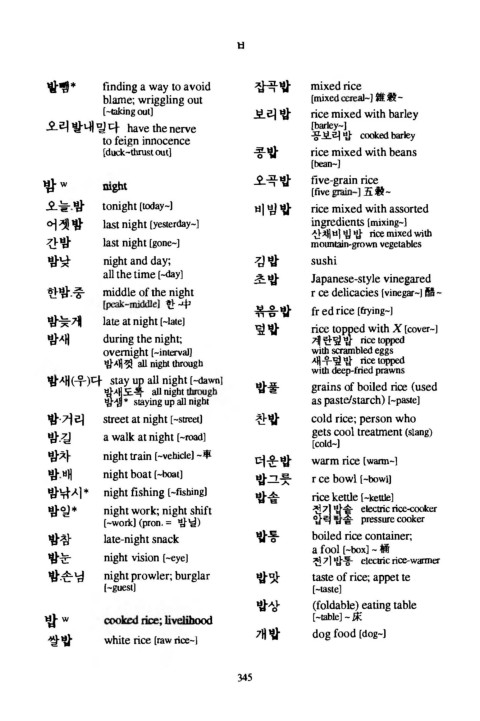 밤손님 n ig h t p ro w le r ; b u rg la r 밥맛 taste o f ric e ; a p p e t te