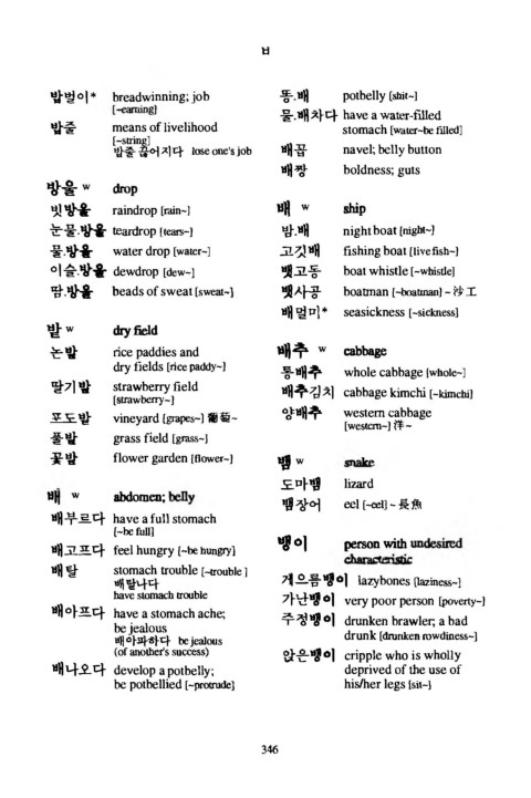 물.방율 w a te r d ro p [w ater-] 고깃배 fis h in g b o a t [liv e fis h -]