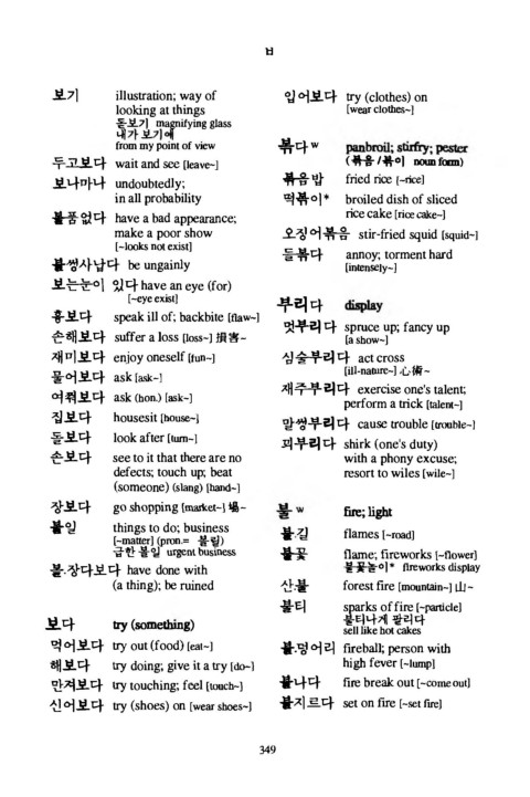 먹어보다 try o u t ( fo o d ) [ . 앓 불-명 어 리 f ir e b 외1; p e rs o n w ith