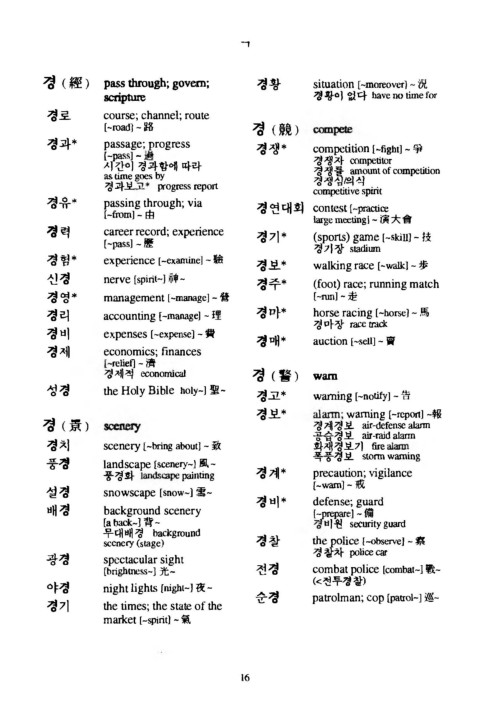 경과 * p a s s a g e ;p ro g re s s 경쟁 * c o m p e titio n f-fig h t] - 爭