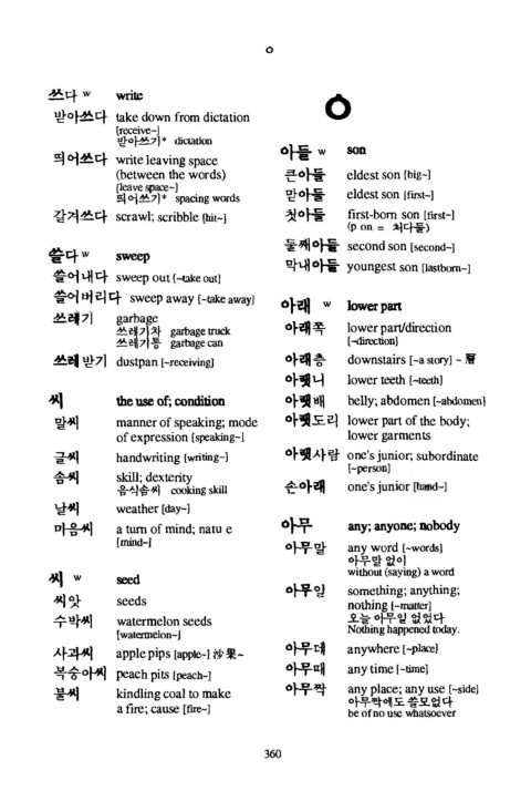글 h a n d w ritin g [w ritin g -] 아랫사람 o n e 's ju n io r ; s u b o rd in a te