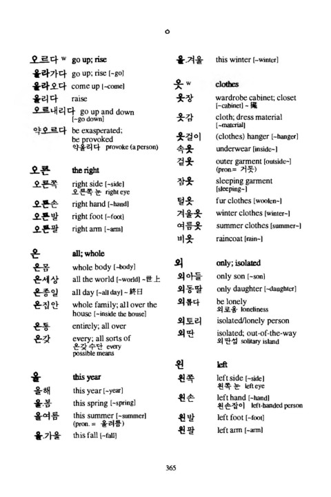 오른손 right h없d [-따nd] 털옷 fu r clothes [woolen-]