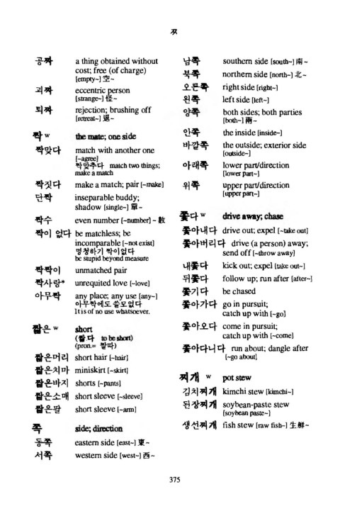 짝짝。 ) unmatched pair 내쫓다 닌c k out; expel [ t o ouH