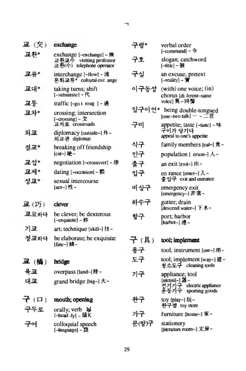 구 ( ᄆ ) m o u th ; o^pening 완구 to y [p la y-] 玩-