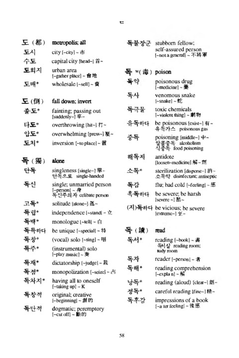 독 ( 獨 ) alone [loosen〜edicine] 解 - 뺑