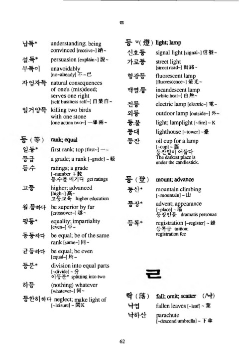 납득* understanding; bei ng 등 w ( 燈 ) 표咖 l a m p