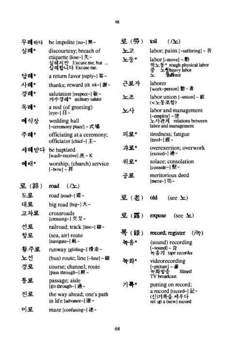 무례 하다 b e impolite [no-] 無~ 로 (勞 ) toil (/노)