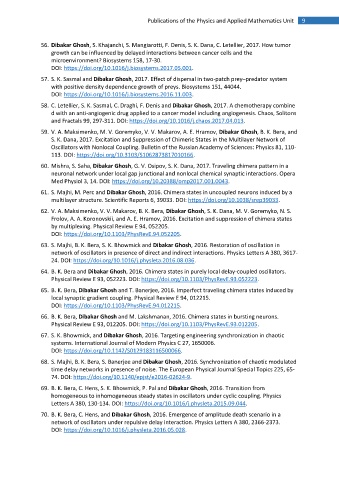 65. B. K. Bera, Dibakar Ghosh and T. Banerjee, 2016. Imperfect traveling chimera states induced by