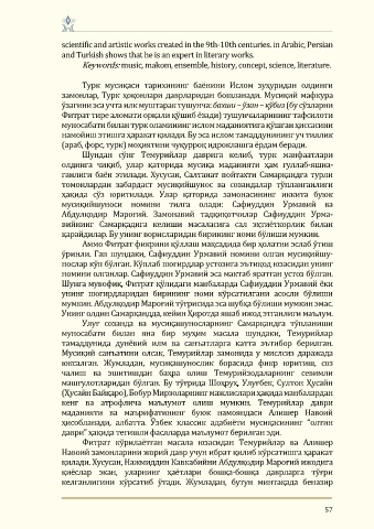 Page 59 - ANSAMBL IJROCHILIGI: TARIX, NAZARIYA, AMALIYOT: Хalqaro ilmiy-amaliy seminar materiallari to'plami