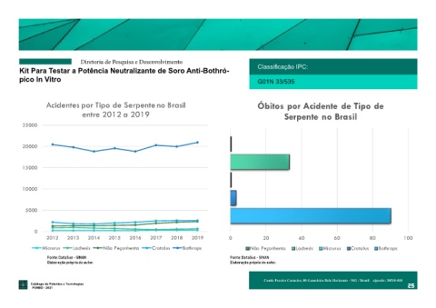24 Catálogo de Patentes e Tecnologias serpente é o uso de antivenenos Catálogo de Patentes e Tecnologias 25