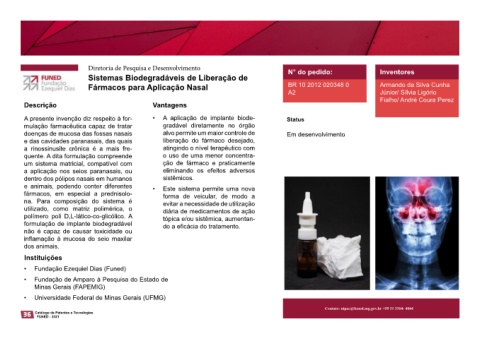 Fármacos para Aplicação Nasal BR 10 2012 020348 0 Armando da Silva Cunha Aplicação Nasal A61K 9/00; A61K 9/24; A61K 31/573; A61P 29/00