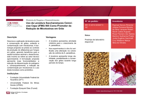 siae Cepa UFMG 905 Como Promotor da BR 10 2014 023447 0 Raphael Sanzio Pimenta/ Como Promotor da Redução de Micotoxinas em Grão A23L 3/3571