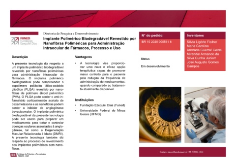 A presente tecnologia diz respeito a • A tecnologia visa proporcio- José Augusto Gomes Degeneração Macular Relacionada à Acima de 65 Anos em Relação a