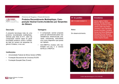 posição Vacinal Contra Acidentes por Serpentes BR 10 2020 024827 8 Silvia Ligório Fialho/ Contra Acidentes por Serpentes do Gênero DPD