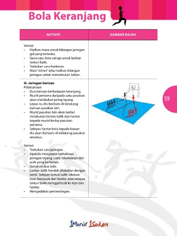 58 dia akan hantar bola kepada kawannya akan melakukan jaring layang. 59