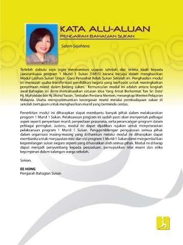 membantu untuk menjayakan misi dan visi program 1 Murid 1 Sukan demi mengembalikan Modul ini adalah hasil usaha bersama Bahagian Pendidikan Guru dan Bahagian Sukan