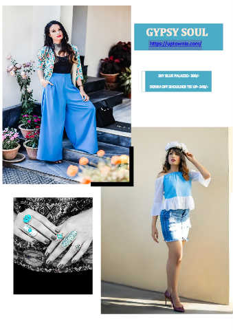 GYPSY SOUL https://uptownie.com/ SKY BLUE PALAZZO- 399/- DENIM OFF SHOULDER TIE UP- 349/-