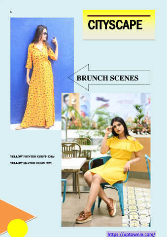 5 CITYSCAPE BRUNCH SCENES YELLOW PRINTED KURTI- 1209/- YELLOW SKATER DRESS- 989/- https://uptownie.com/