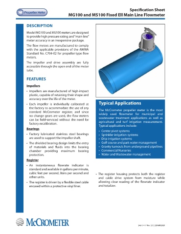 MG100 and MS100 Fixed Ell Main Line Flowmeter
