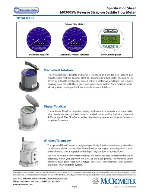Copyright © 2001-2019 McCrometer, Inc. All printed material should not be changed or altered without permission of McCrometer. Any published pricing,