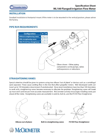 ahead of the meter. Straightening vanes are available in weld-in, bolt-in, and the FS100 Flow Straightener.