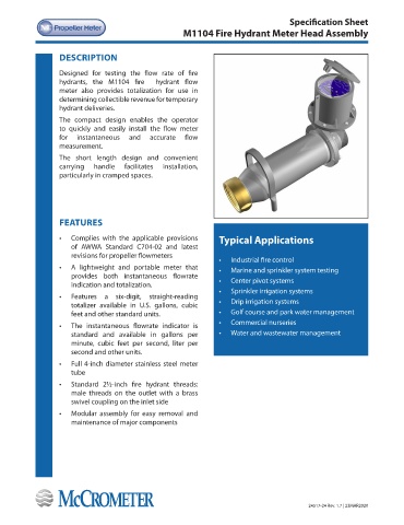 • A lightweight and portable meter that • Marine and sprinkler system testing