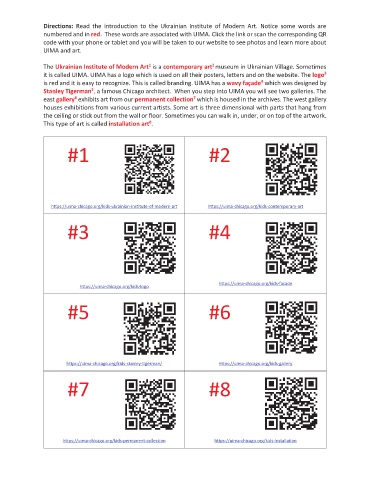 Directions: Read the introduction to the Ukrainian Institute of Modern Art. Notice some words are