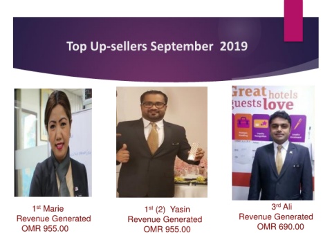 Top Up-sellers September 2019 rd st 1 Marie 1 (2) Yasin 3 Ali st Revenue Generated Revenue Generated Revenue Generated OMR 955.00 OMR 955.00 OMR 690.00