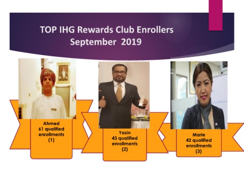 TOP IHG Rewards Club Enrollers September 2019 Ahmed 61 qualified enrollments Yasin Marie (1) 43 qualified 42 qualified enrollments enrollments (2) (3)
