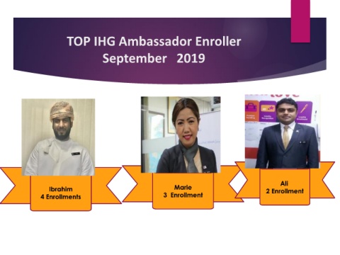 TOP IHG Ambassador Enroller September 2019 Ali Ibrahim Marie 2 Enrollment 4 Enrollments 3 Enrollment