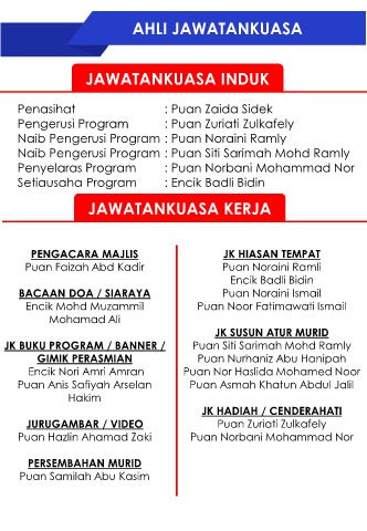 Naib Pengerusi Program : Puan Siti Sarimah Mohd Ramly