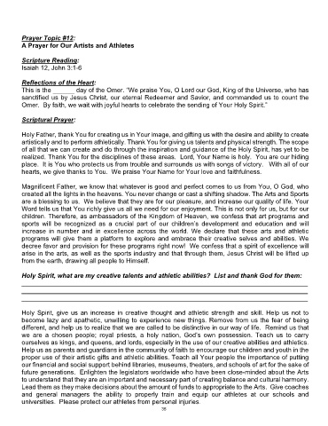proper use of their artistic gifts and athletic abilities. Teach all Your people the importance of putting