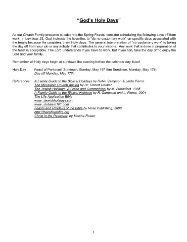 References: A Family Guide to the Biblical Holidays by Robin Sampson & Linda Pierce