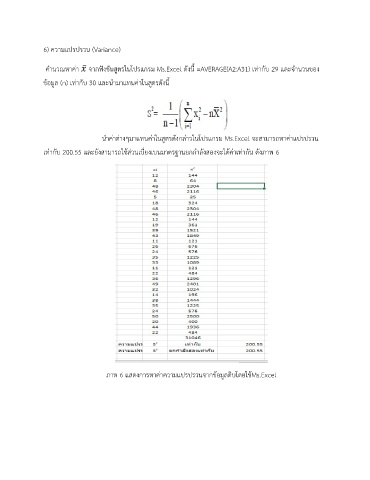 เท่ากับ 200.55 และยังสามารถใช้ส่วนเบี่ยงเบนมาตรฐานยกกำลังสองจะได้ค่าเท่ากัน ดังภาพ 6