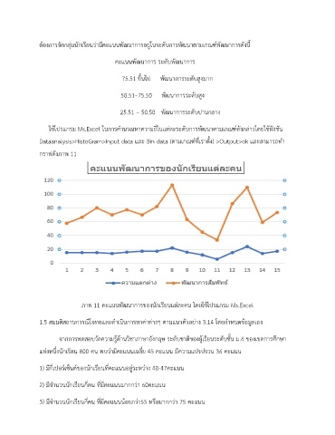 ภาพ 11 คะแนนพัฒนาการของนักเรียนแต่ละคน โดยใช้โปรแกรม Ms.Excel