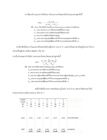 จะได้ค่าดัชนีอำนาจจำแนกของข้อสอบอัตนัยอยู่ในช่วง 0.21-0.75 แสดงว่าข้อสอบทุกข้ออยู่ในช่วงค่าอำนาจ