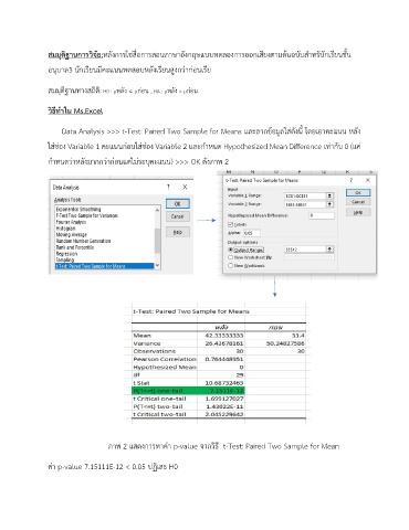 ภาพ 2 แสดงการหาค่า p-value จากวิธี t-Test: Paired Two Sample for Mean