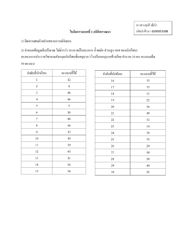 ใบกิจกรรมบทที่ 2 สถิติพรรณนา รหัสนักศึกษา 6590051008