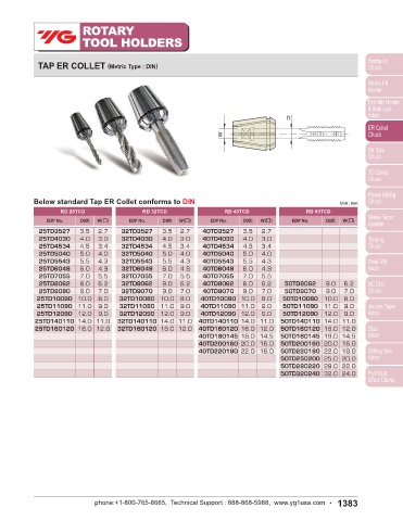 Below standard Tap ER Collet conforms to DIN Unit : mm Below standard Tap ER Collet conforms to DIN Unit : mm