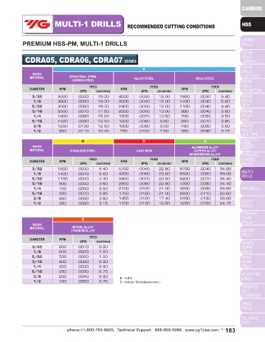 MULTI-1 DRILLS MULTI-1 DRILLS RECOMMENDED CUTTING CONDITIONS