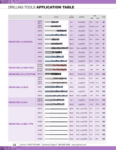 DRILLING TOOLS APPLICATION TABLE SOLID