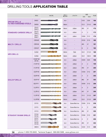 DRILLING TOOLS APPLICATION TABLE SOLID