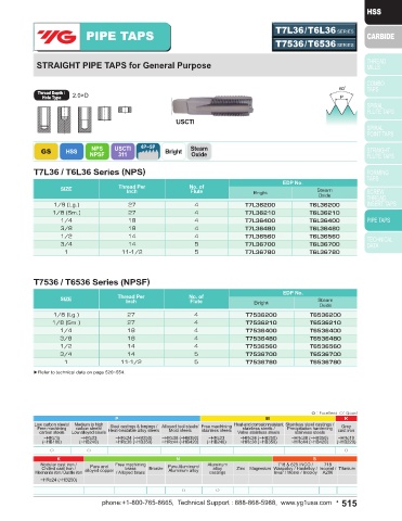514 • phone:+1-800-765-8665, Technical Support : 888-868-5988, www.yg1usa.com phone:+1-800-765-8665, Technical Support : 888-868-5988, www.yg1usa.com • 515